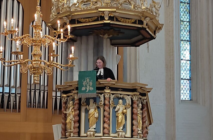 Landrat Kai Seefried predigt auf der Bürgerkanzel in St. Wilhadi