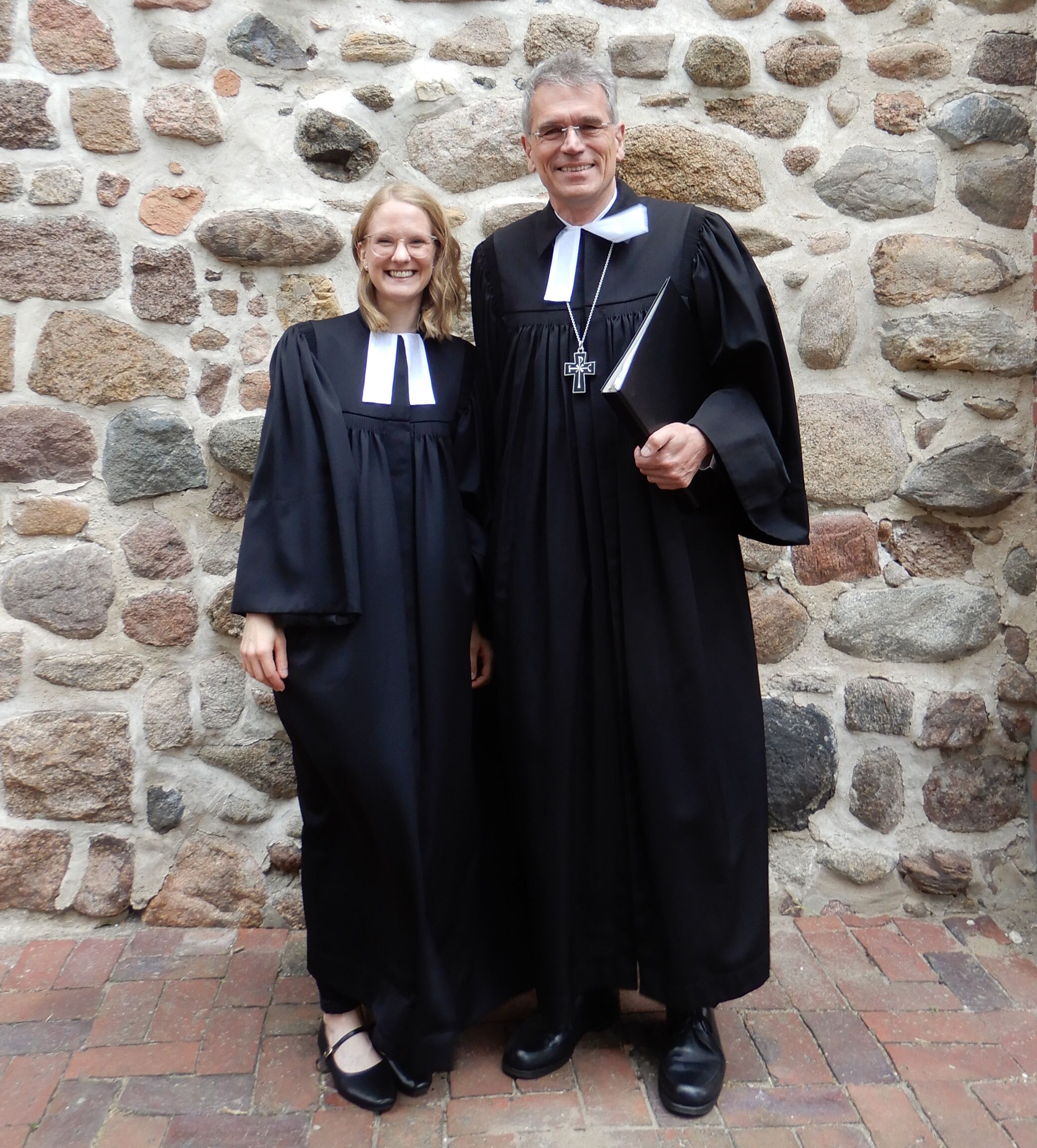 Im Anschluss überbrachten Vertreterinnen und Vertreter aus Kirche, Kommune und Gemeinde ihre Glückwünsche. Pastor Klaus Volkhardt, praktischer Ausbilder im Vikariat, bezeichnete Alyssa Baatz als ein „echtes Goldstück“ und ermutigte die neue Gemeinde, gut auf sie zu achten und ihr Raum zur Entfaltung zu geben. Der stellvertretende Superintendent Dr. Christian Kurzewitz überbrachte die Grüße des Kirchenkreises. Er betonte, wie sehr ihn freue, dass mit Alyssa Baatz bereits die zweite Ordination im Kirchenkreis binnen kurzer Zeit gefeiert werden konnte.