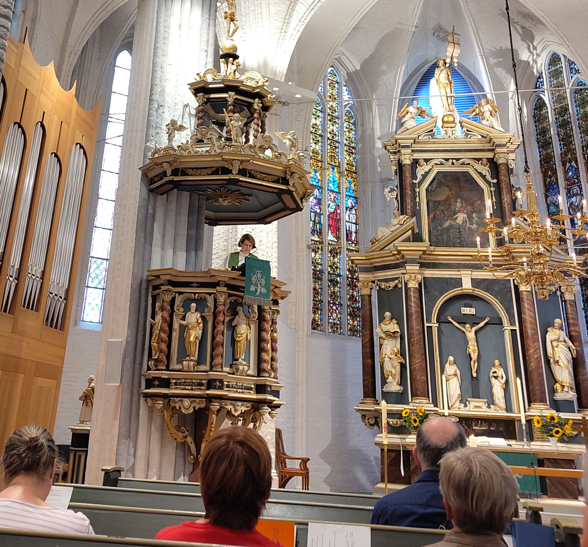 In der St. Wilhadi-Kirche zeigte Ann-Katrin Hamsch, was sie theologisch bewegt. Mit einer Predigt über einen ebenso herausfordernden wie vielschichtigen Text (1. Tim 1,12-17) nahm sie die Gemeinde mit auf eine Gedankenreise in die frühen Anfänge des Christentums und schlug gleichzeitig den Bogen zu aktuellen Fragen: Was trägt uns, wenn unser bisheriges Leben plötzlich aus den Fugen gerät? Was gibt Halt, wenn Gewohntes wegbricht, durch Krankheit, berufliche Veränderungen oder den Abschied in den Ruhestand?